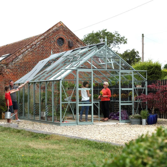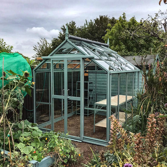 The Silver Sage high-quality powder-coated finish is applied by a UK specialist trusted by Jaguar Land Rover and Aston Martin. Specially formulated for Rhino Greenhouses, the coating process is chromate-free and environmentally friendly. Aluminium is notoriously difficult to paint, so each part undergoes a 12-stage pre-treatment before the powder is electrostatically applied for a flawless, even finish. Baked at 200°C, this process ensures exceptional durability, allowing us to offer an industry-leading 25-year guarantee—a level of quality even luxury cars don’t match!